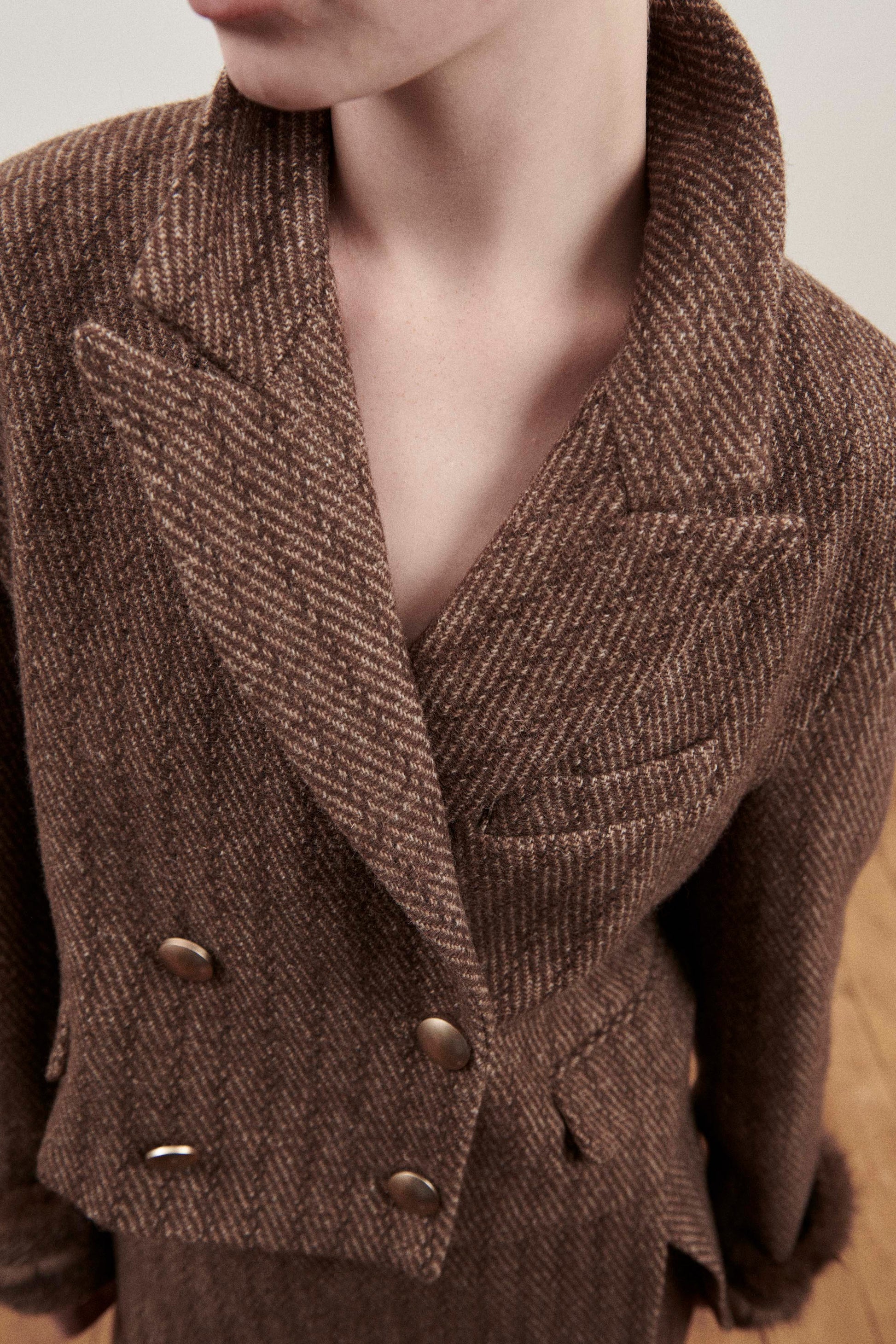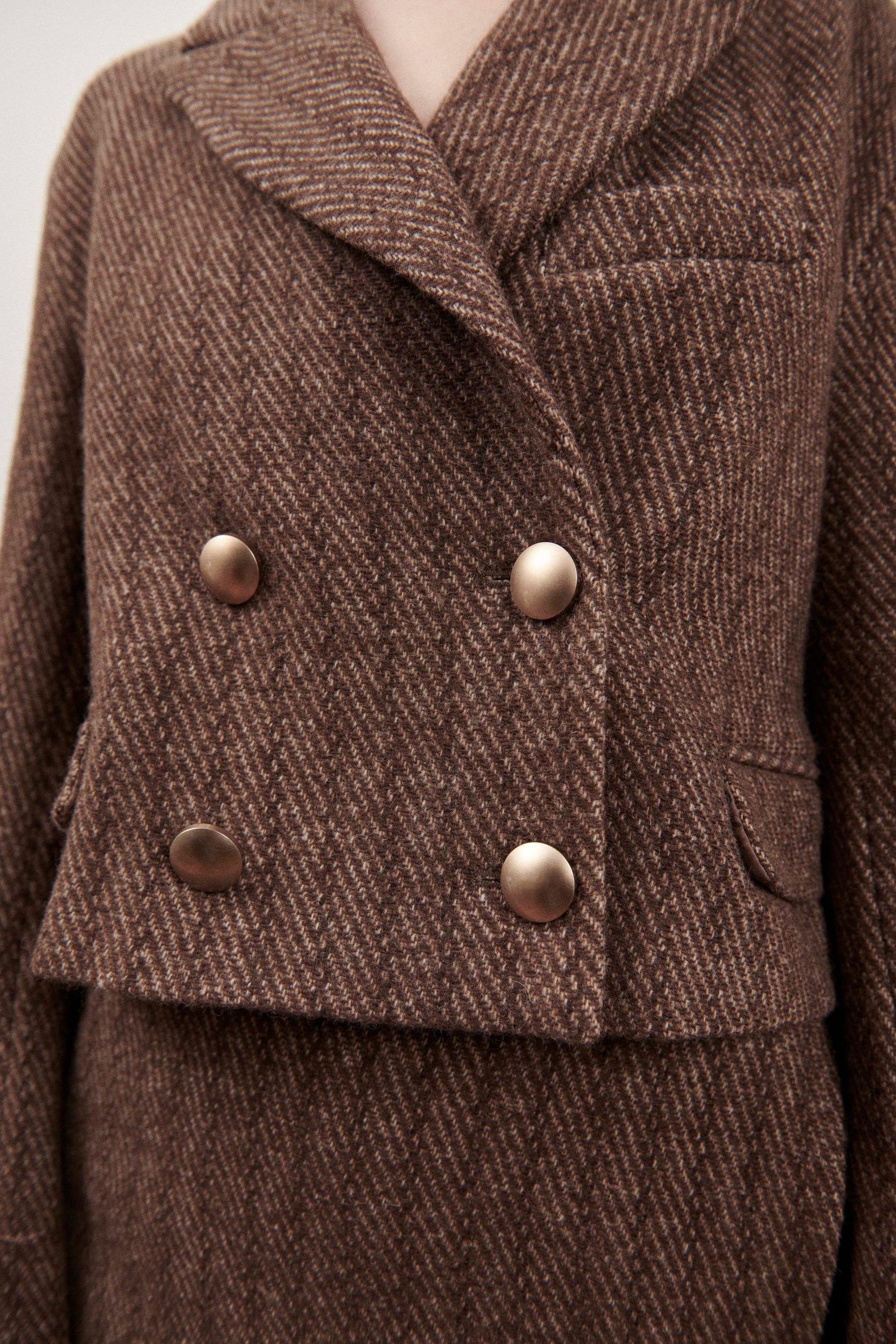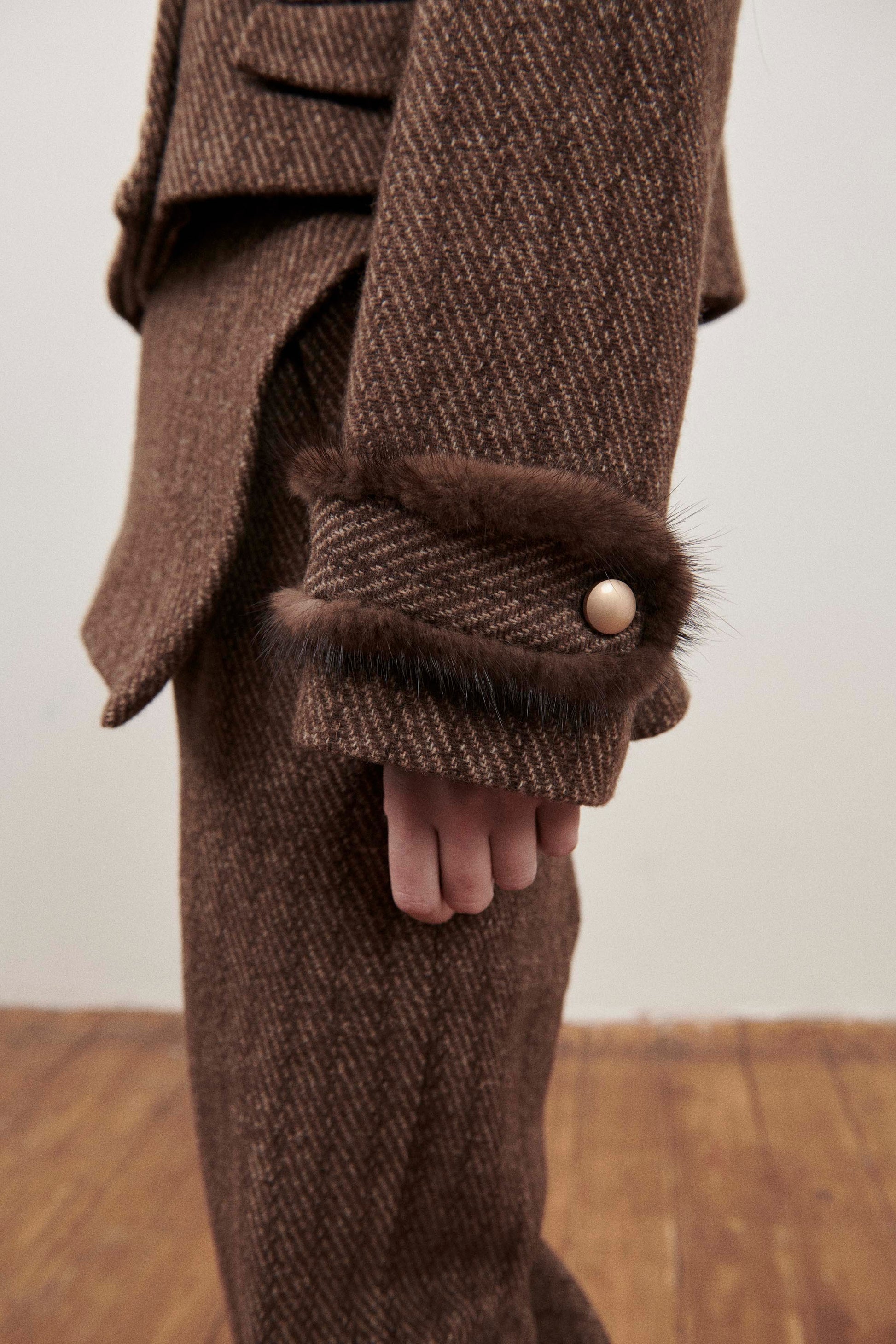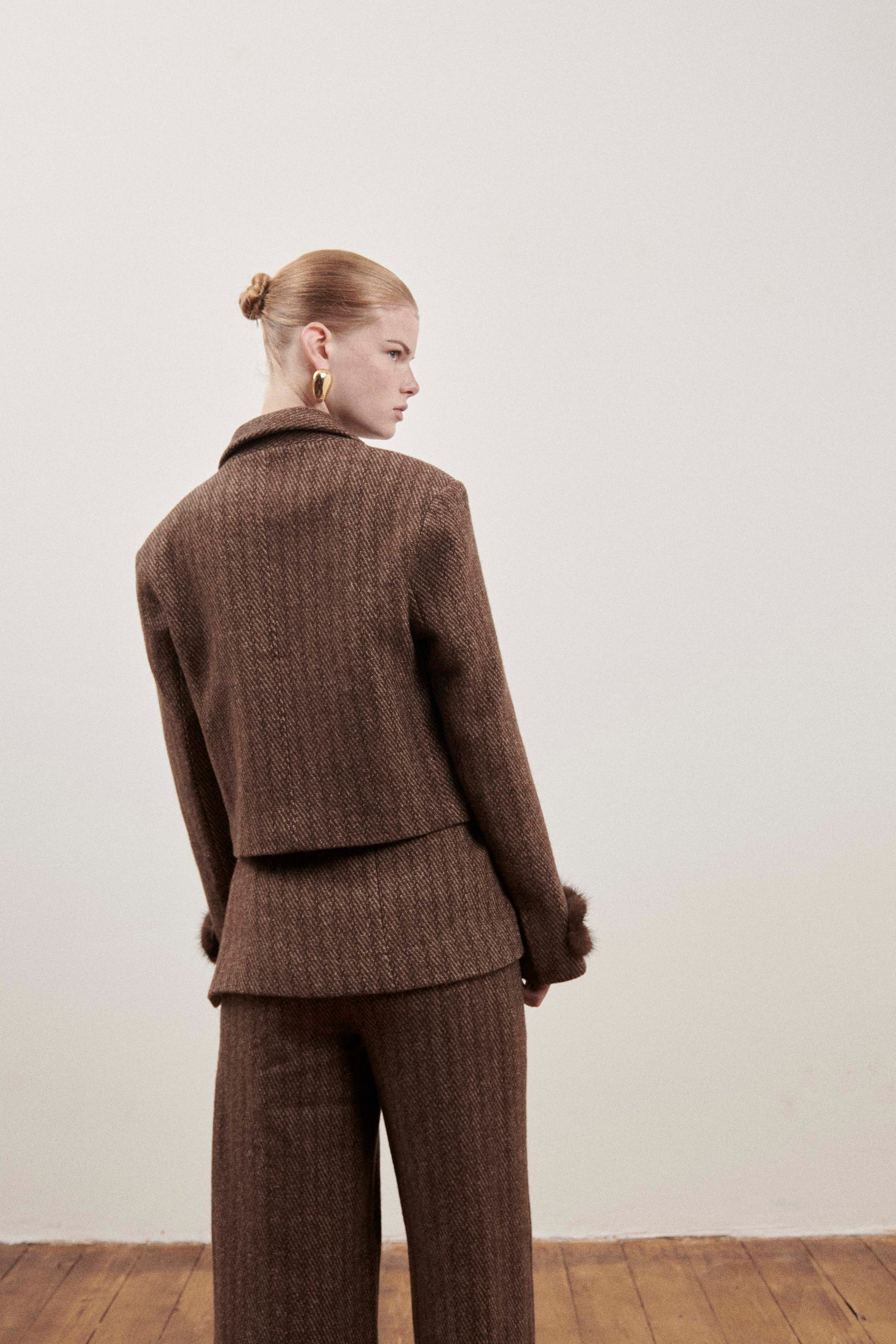 The Berwick Jacket features a double breasted, button fastening and fur lined cuffs on the sleeves.