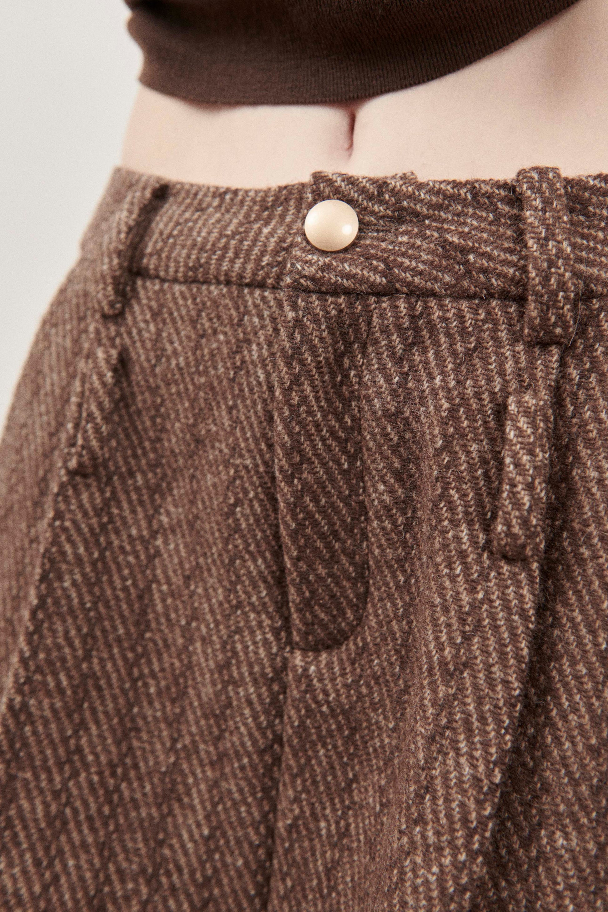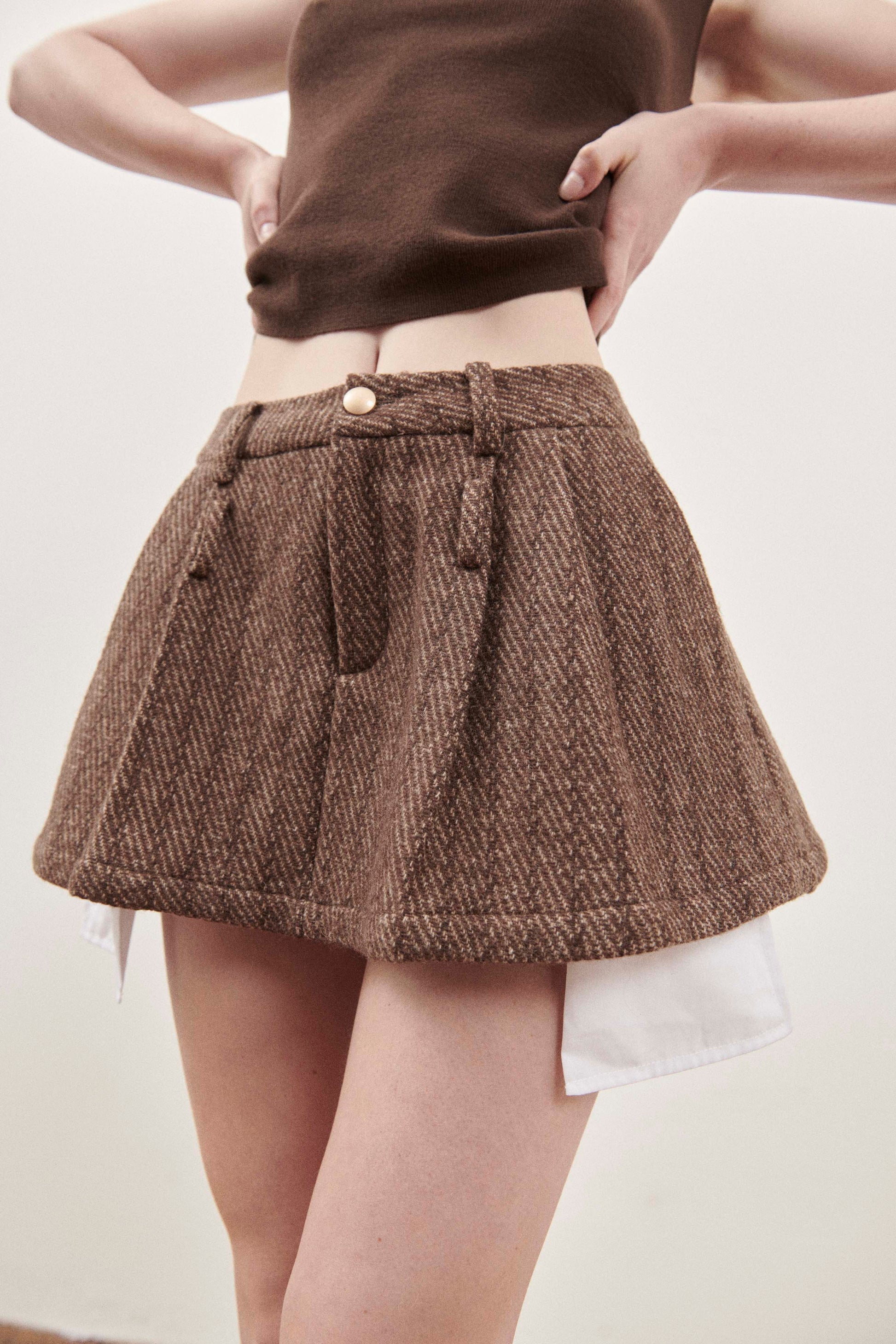 This modern take on a checked wool mini skirt features wide pleats, visible pockets and built in shorts for added modesty.
