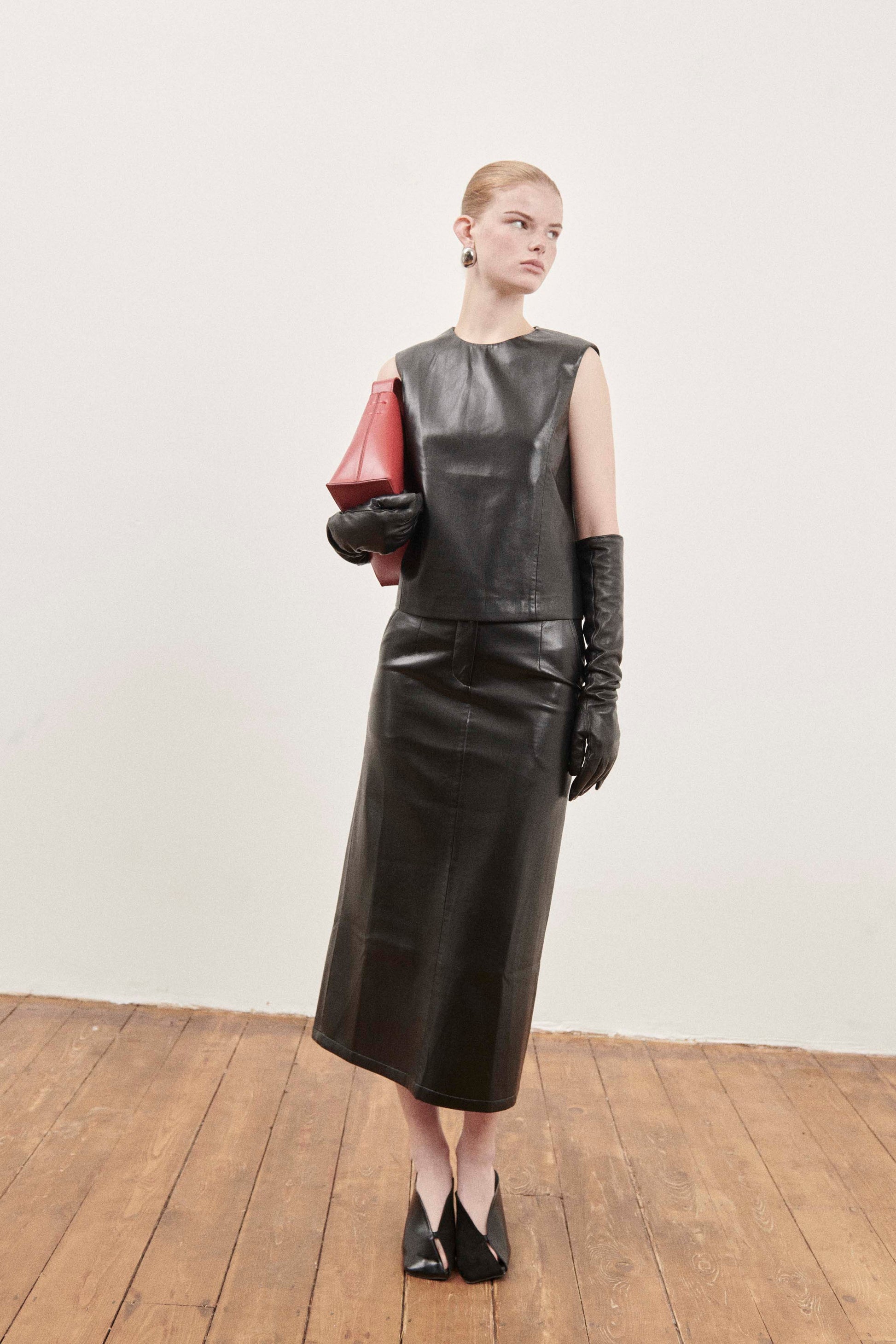 A velvet touch, faux leather top with an easy to style boxy fit.