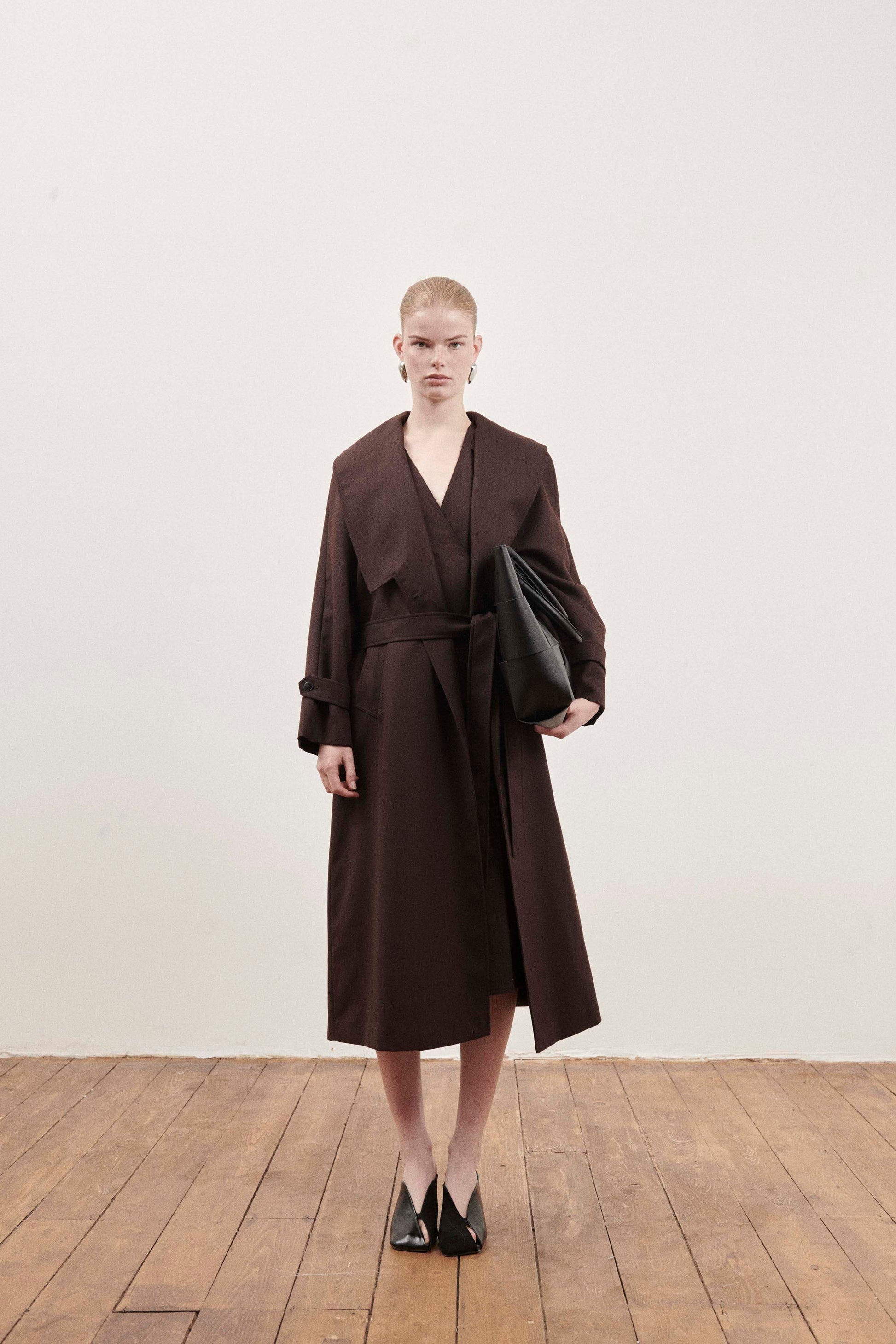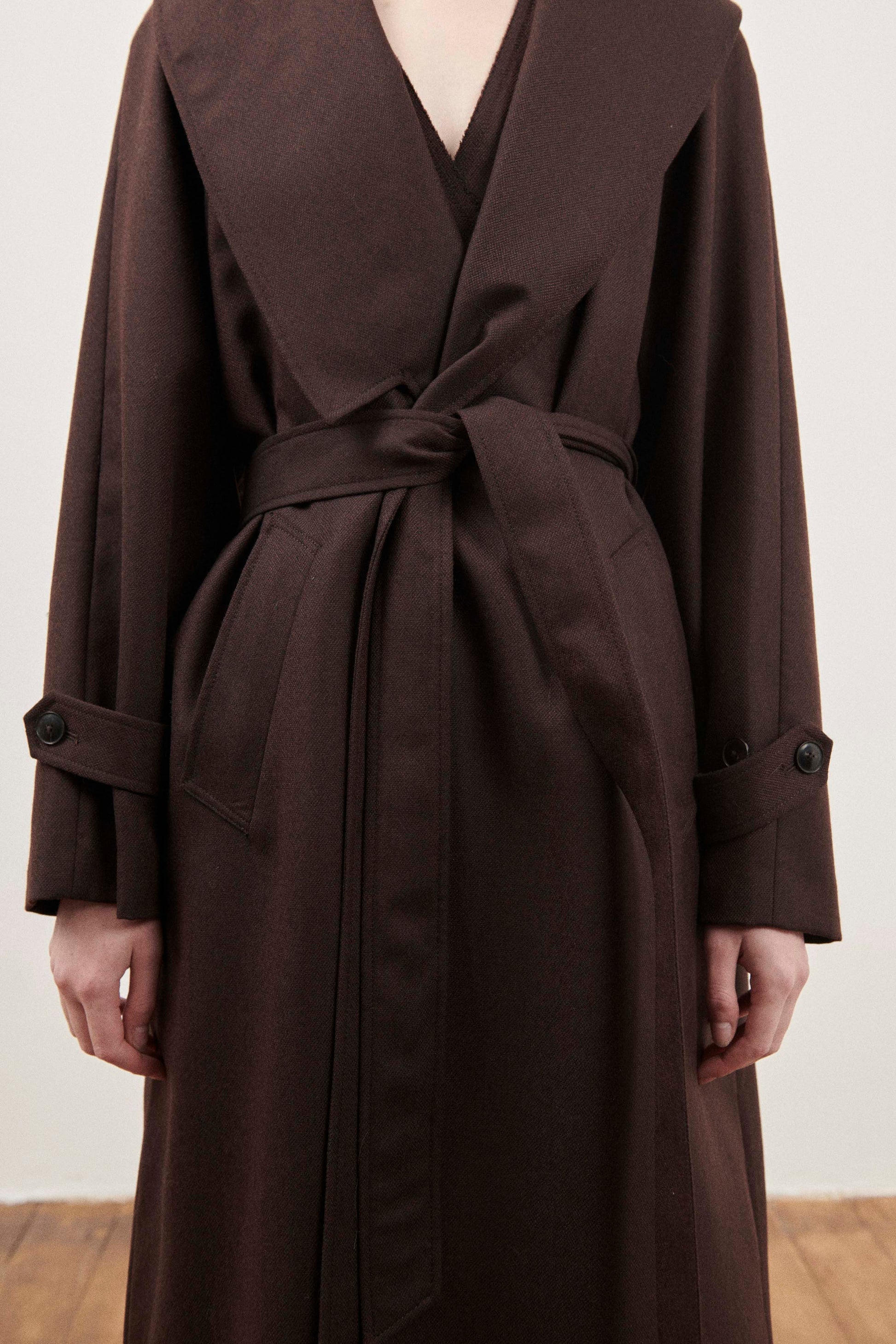 The Victoria Trench features a casual belt tie combined with a wide collar, back flap and slit for an elegant shape.