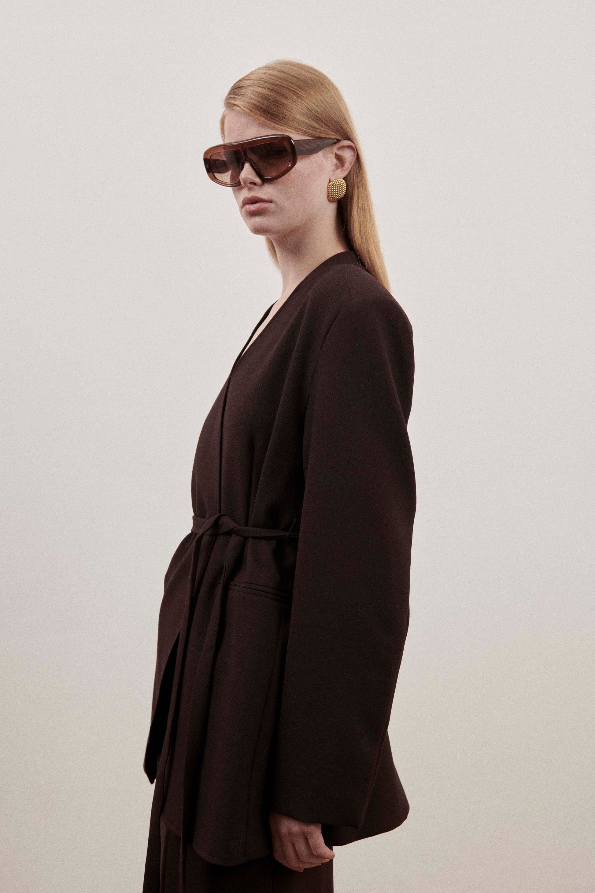 A casual take on the classic blazer. The Chocolate Wrap Blazer combines cashmere and lana wool, with a wrap around tie feature to create the perfect day-to-day piece.