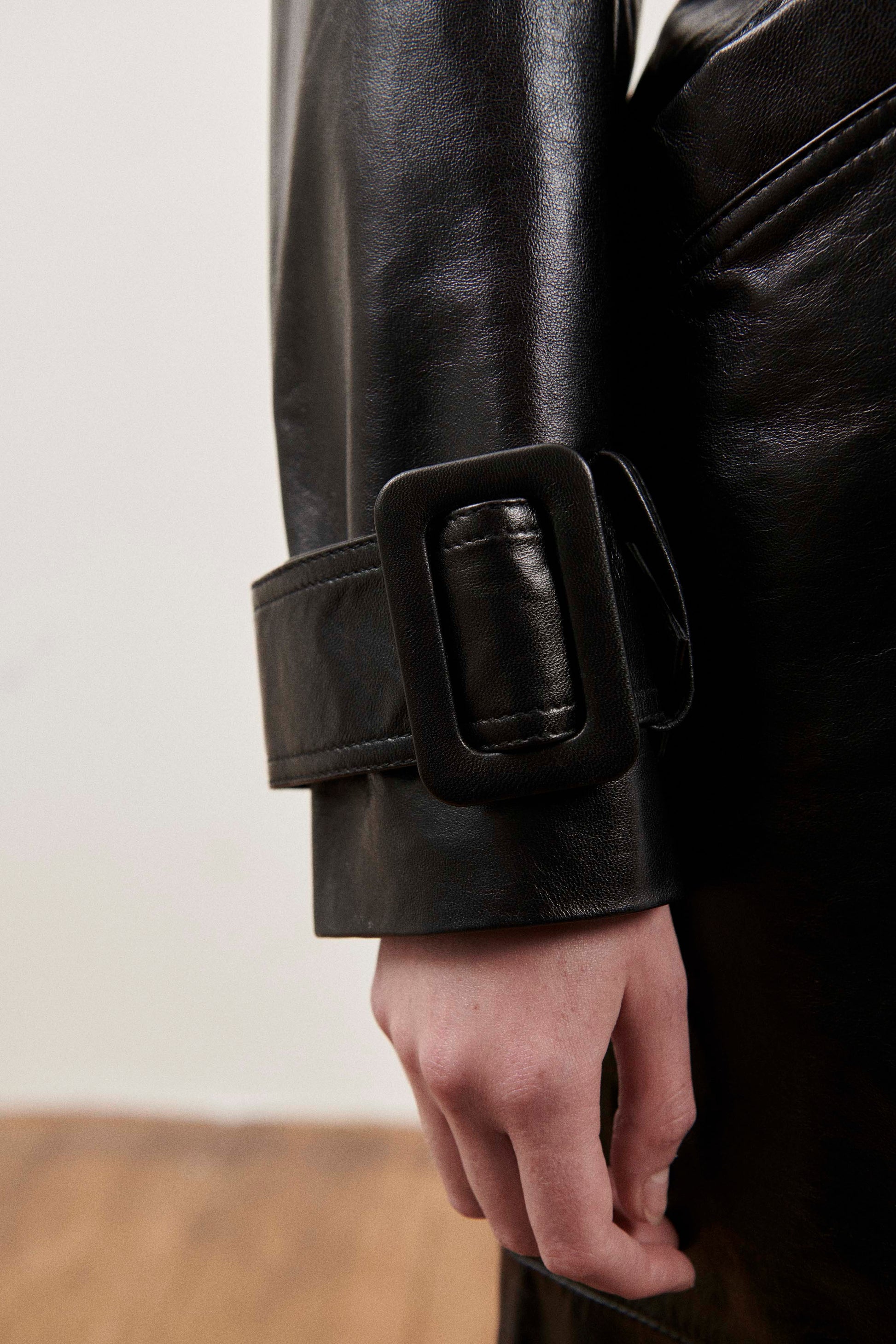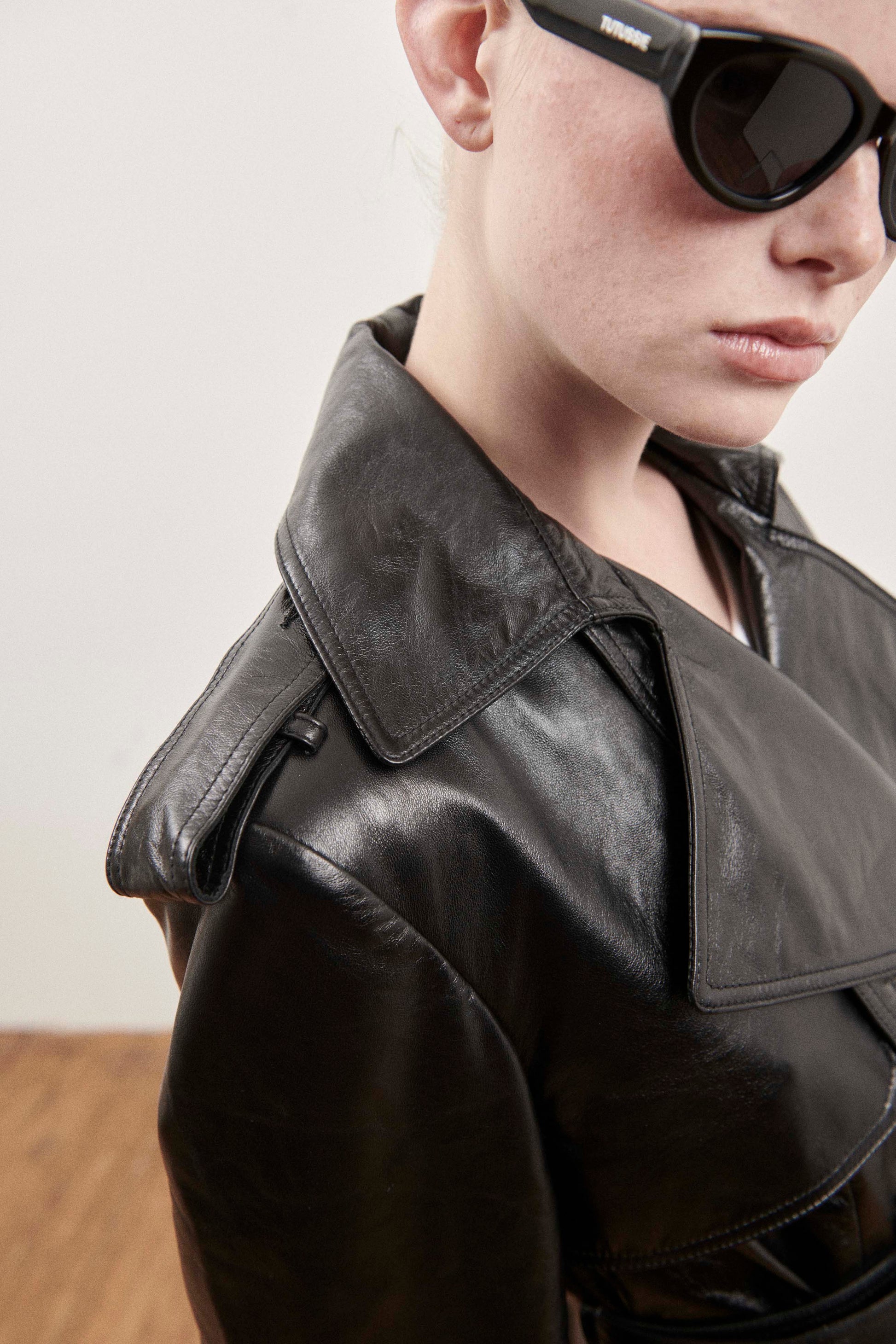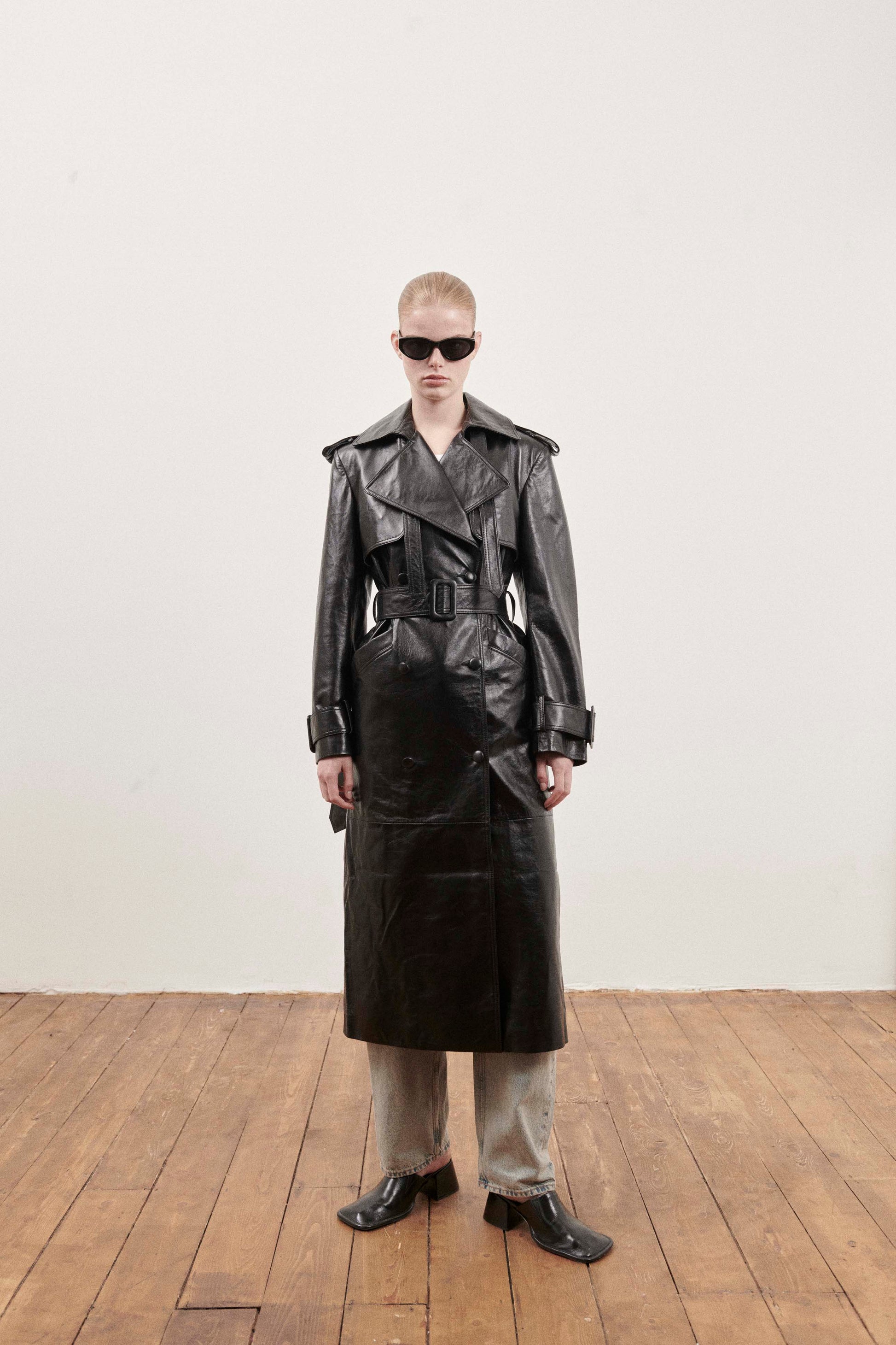 The chic Marne Trench features an intricate design of layered panels and ties combined with a sleek double breasted finish.