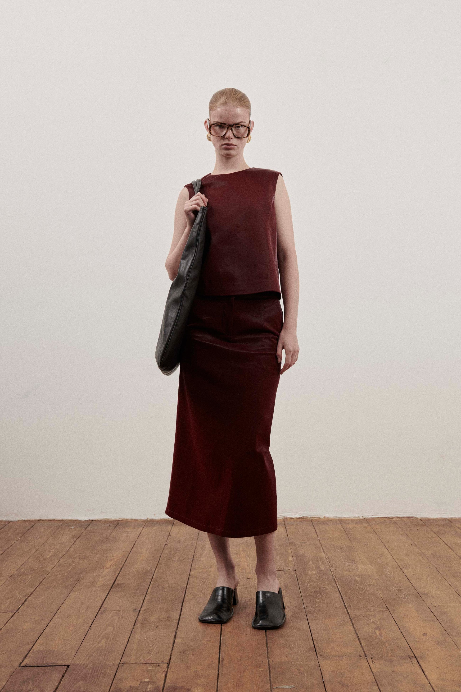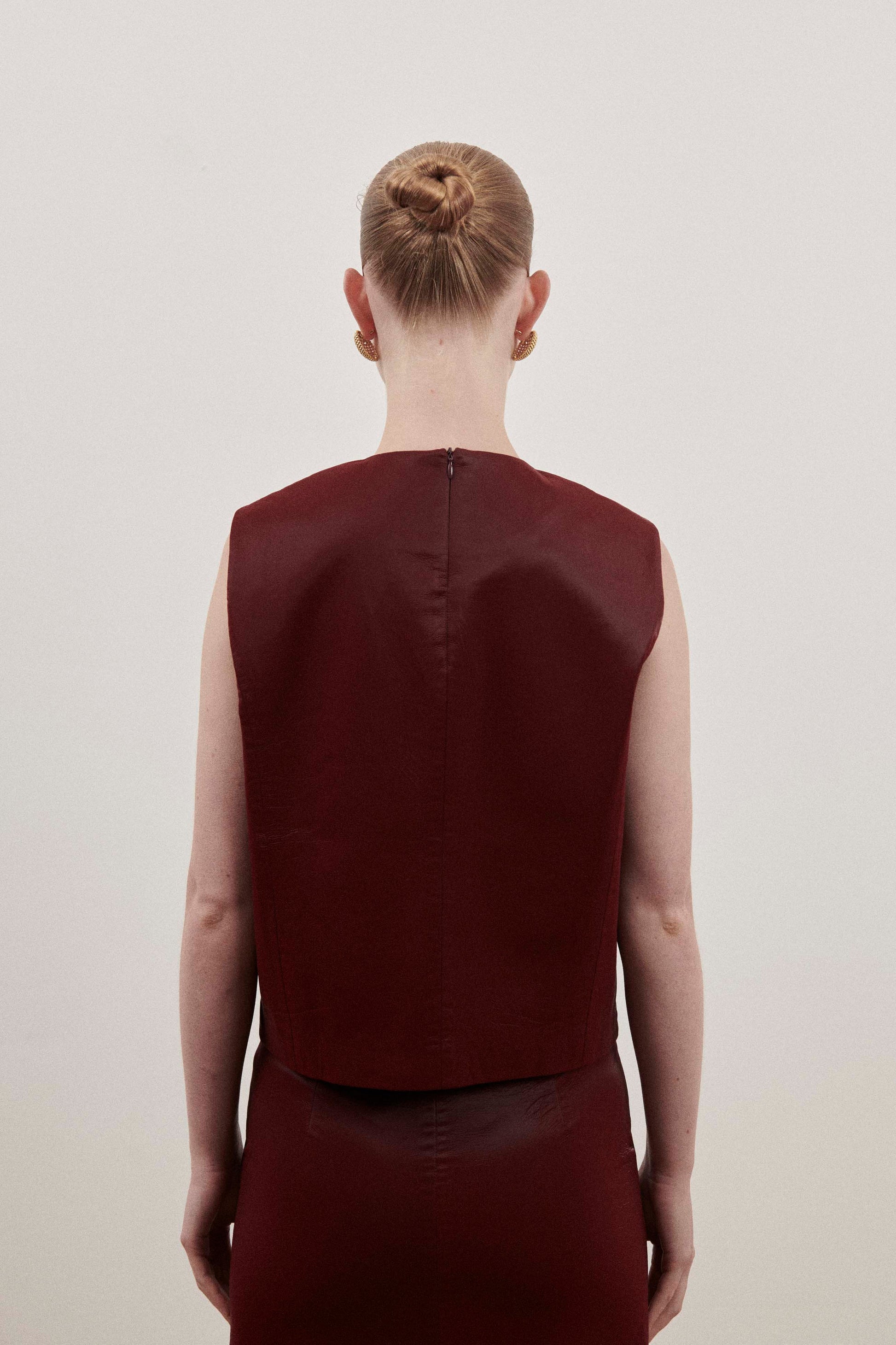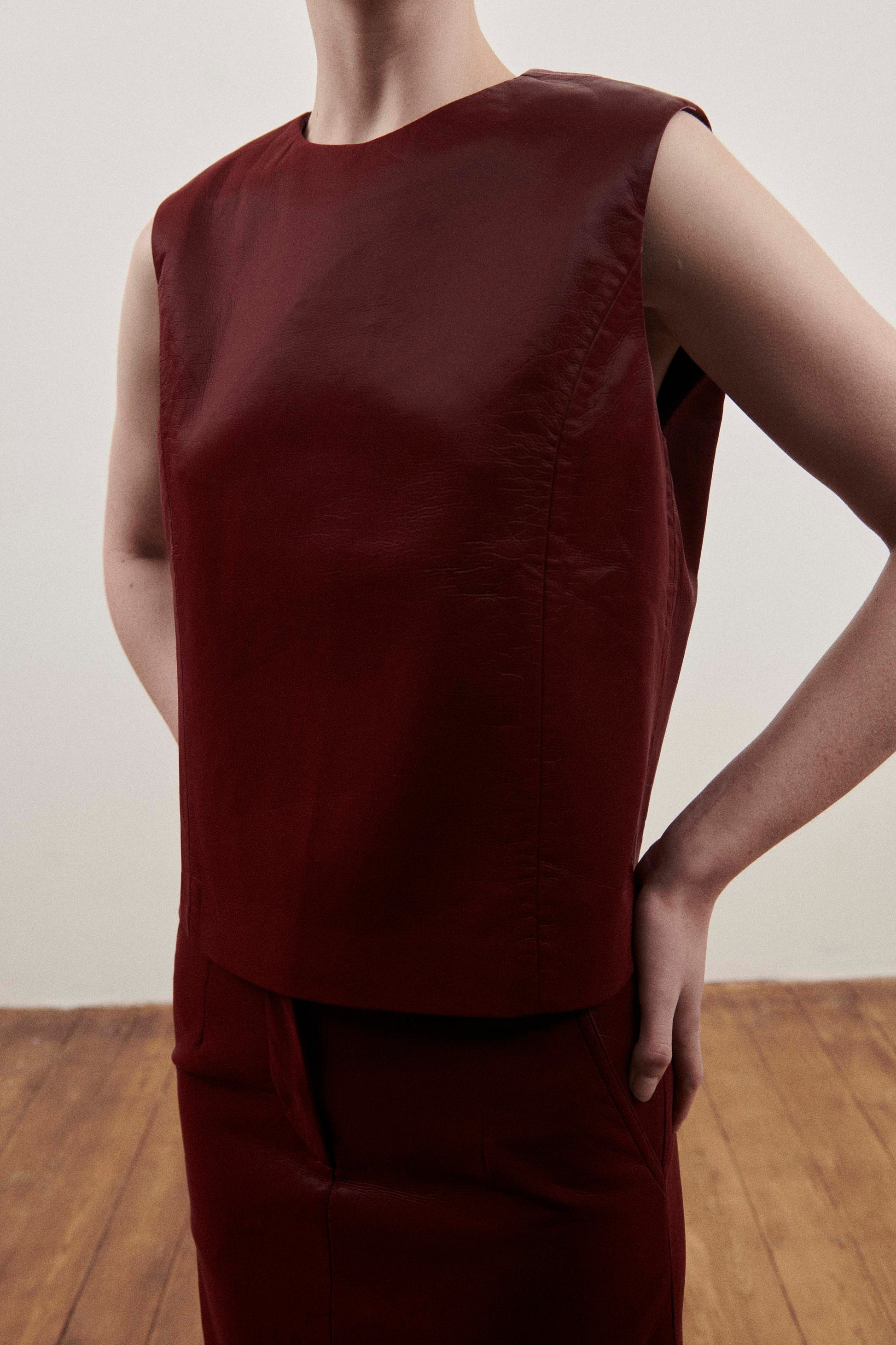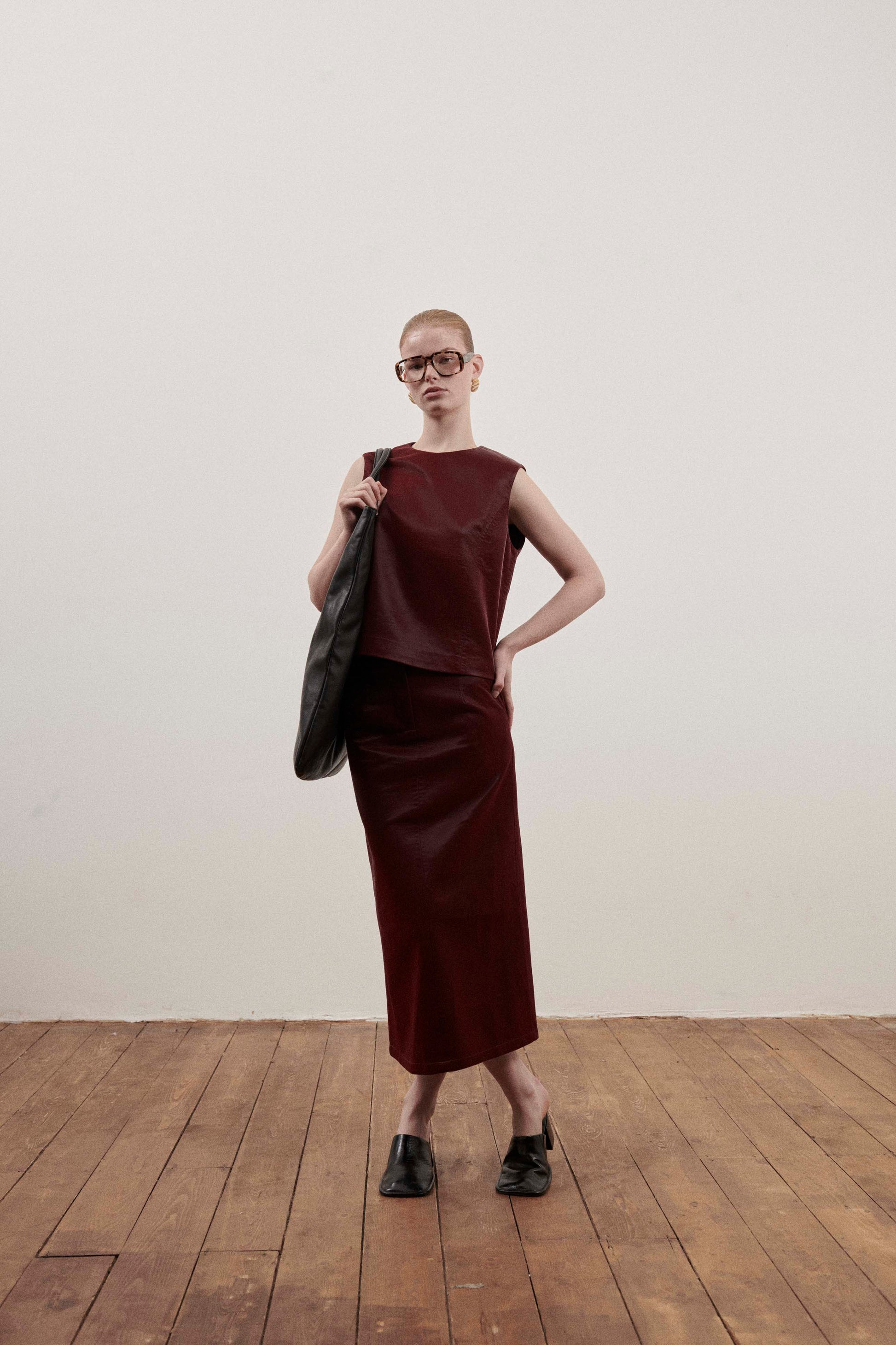 A velvet touch, faux leather top with an easy to style boxy fit.